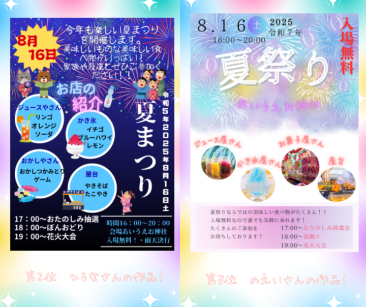 みなさんの作品はどれもアイデアにあふれ、見る人を楽しませてくれる素敵なデザインばかりでした✨